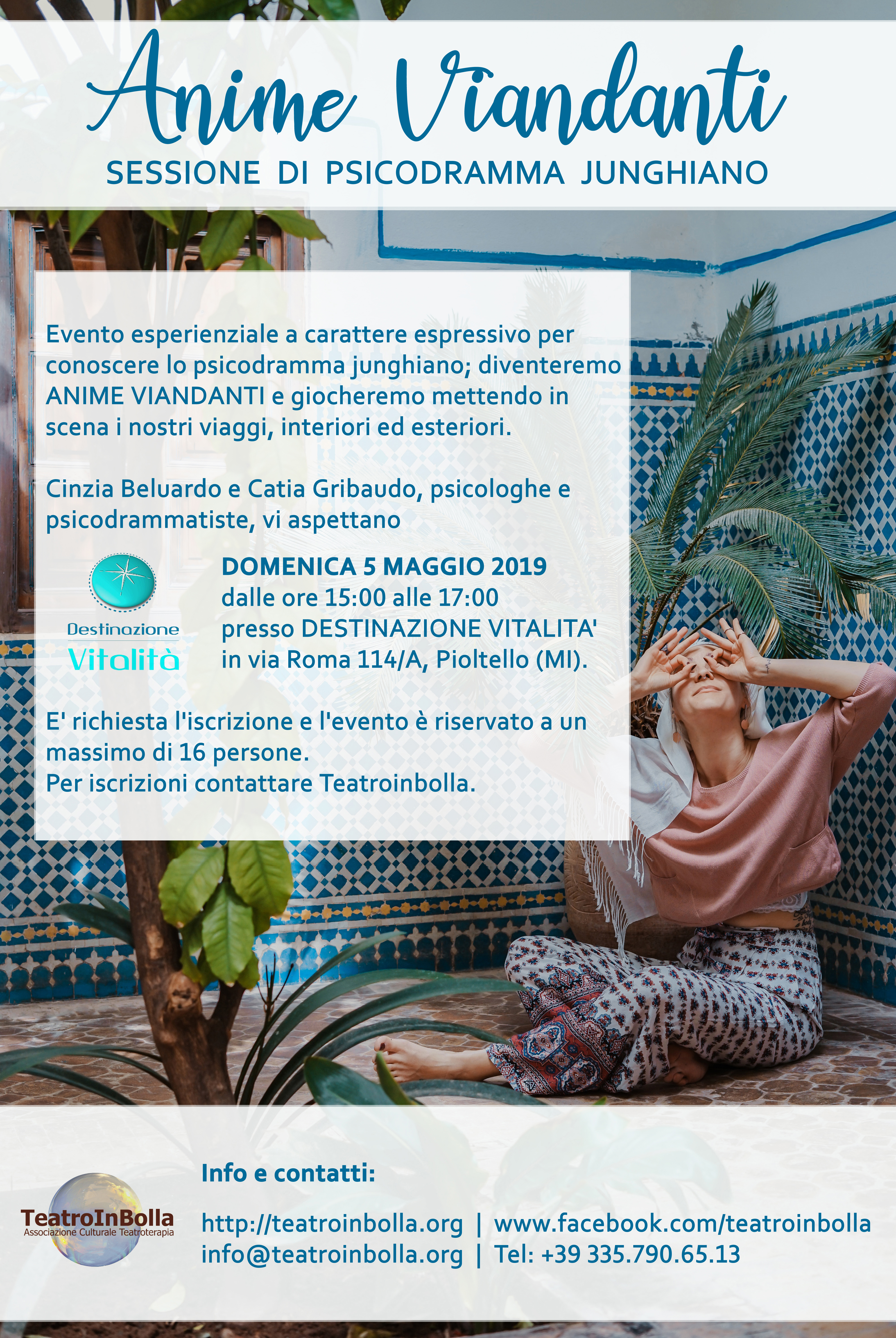 Dalle ore 20:00 alle ore 22:00 Via M.Bricca,10 โCorpo e psiche nomadi. Quando transitiamo sogni: Chi incontriamo? Come incontriamo? Che cosa portiamo? Che cosa lasciamo? Che cosa cerchiamo?โ Serata aperta di Psicodramma Junghiano con Vanda Druetta, Silvia Cerrone Per info: 0118197200